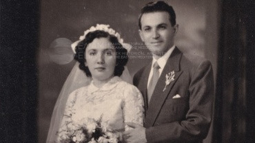 Portrait of the couple Anna (Eleftheriou) Andreadou and Nikolaos Andreadis taken after their wedding. The marriage ceremony took place at the Church of…